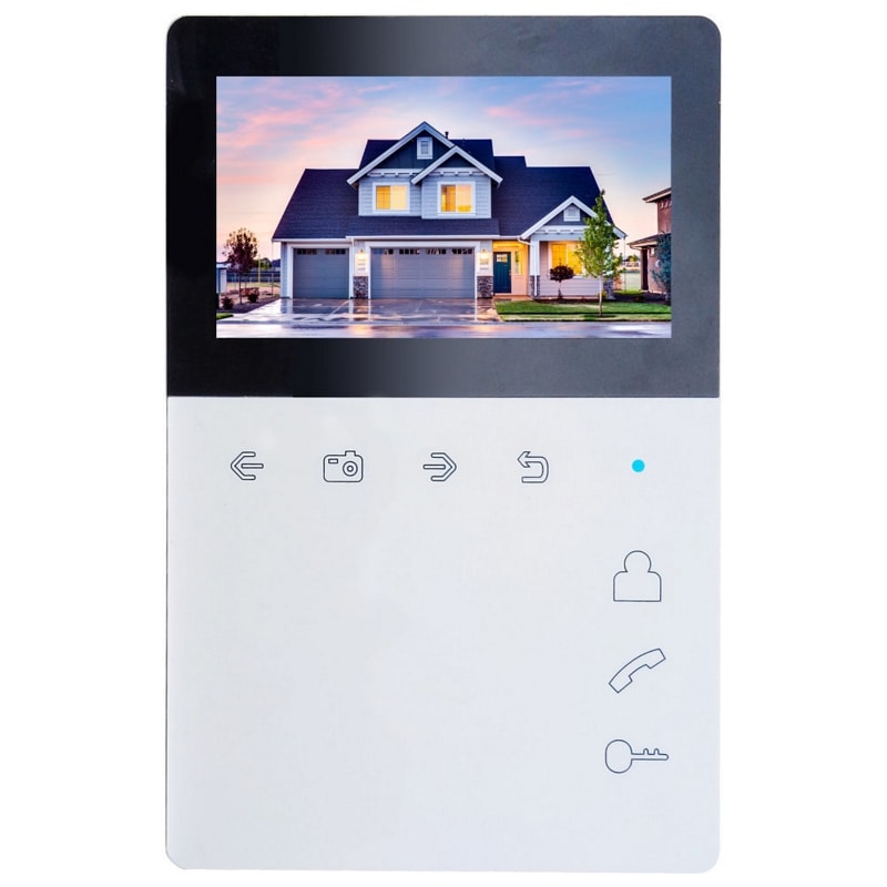 Elly S – монитор домофона с экраном 4.3 дюйма со встроенным блоком питания. Все управление осуществляется сенсорными кнопками.