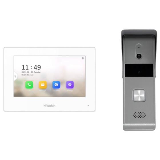 DS-D100HKWF – комплект системы гибридной видеодомофонии с одним видеодомофоном и одной 4-проводной аналоговой вызывной панелью.
