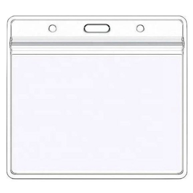 Бейдж горизонтальный с отверстием для ремешка, для проксимити карт. Выполнен из прозрачного винила повышенной прочности, имеет клапан-застёжку.