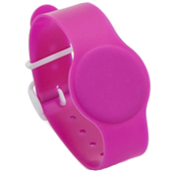 IL-18E – браслет с резиновым ремешком и застежкой, розовый цвет. Влаго- и пылезащищенный корпус, что позволяет применять браслет в аквапарках и бассейнах. Застежка позволяет регулировать длину ремешка, что обеспечивает фиксацию как на руке взрослого человека, так и ребенка. Возможность наносить логотип.