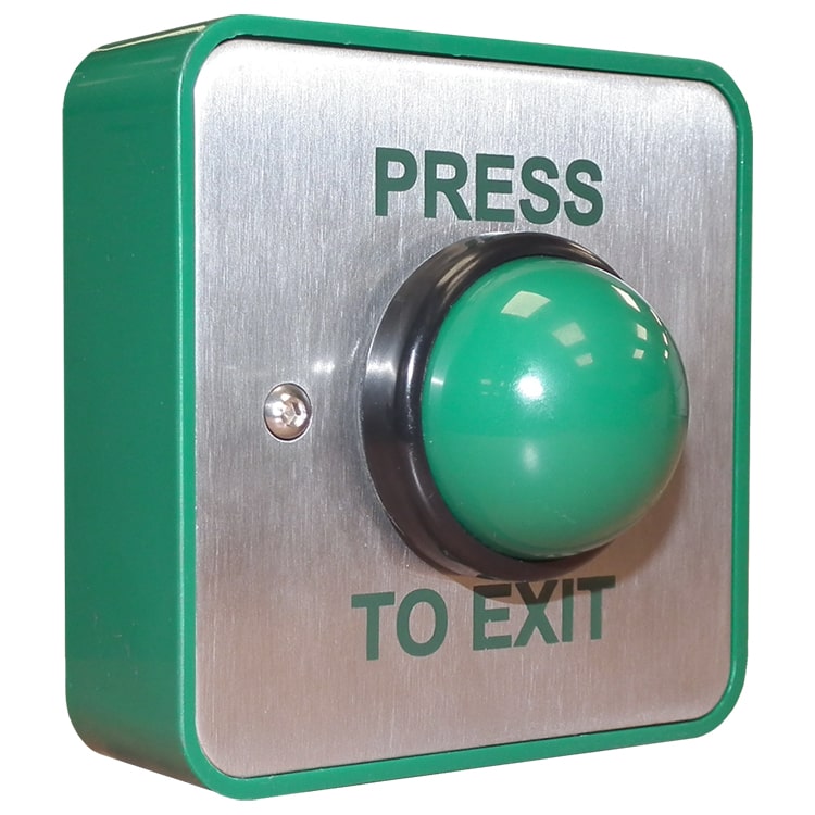 XB/GD25 – выпуклая зеленая кнопка выхода с установочной коробкой (GREEN DOME). Текст выгравирован, есть защита от несанкционированного вскрытия.