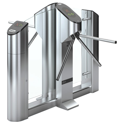 Praktika T-03-DK – тумбовый моторизованный турникет трипод со встроенным картоприемником для контроля доступа и управления потоками людей, обеспечивая разделение их потока «по одному». 2 зоны прохода.