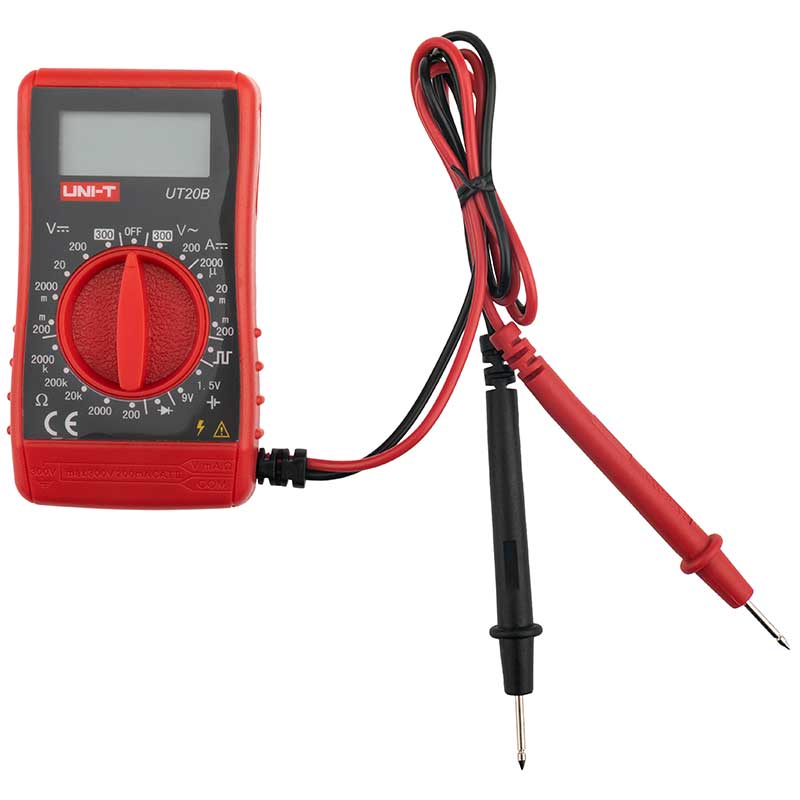 UT20B – электроизмерительный прибор, измеряет постоянное и переменное напряжение, сопротивление и ток в цепи, а также с его помощью можно тестировать батарейки. Обладает высоким классом точности измерений.