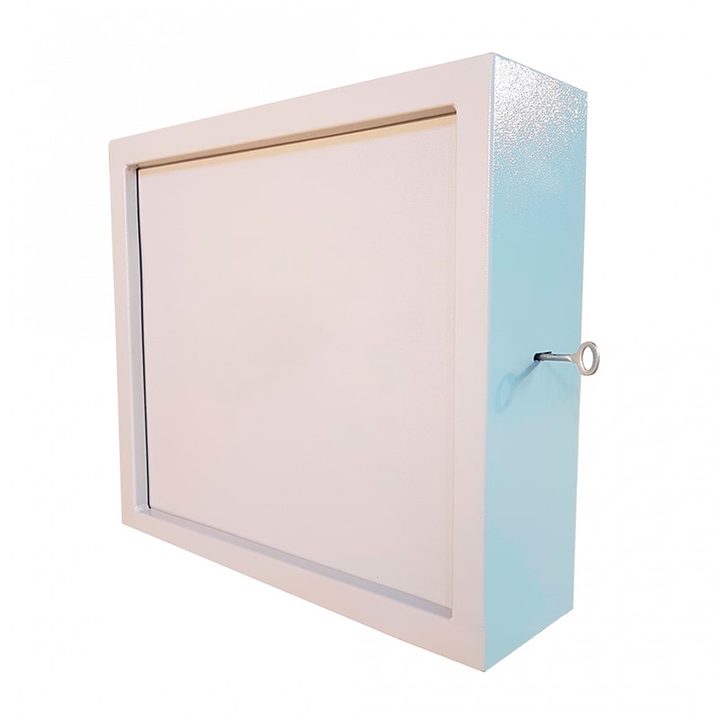 Бокс изготовлен из листовой стали толщиной 1-2 мм, имеет цельносварной корпус со съемной крышкой. Для монтажа предусмотрены сквозные отверстия в задней стенке. Крепеж к стене в комплект не входит.