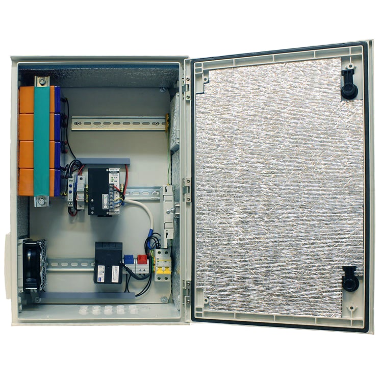 Доступное место под установку оборудования на встроенные DIN-рейки: верхняя - 220 мм, средняя - 70 мм, нижняя - 80 мм. Может поставляться со встроенным оборудованием по заказу. Температура внутри станции: 0…+50°С.