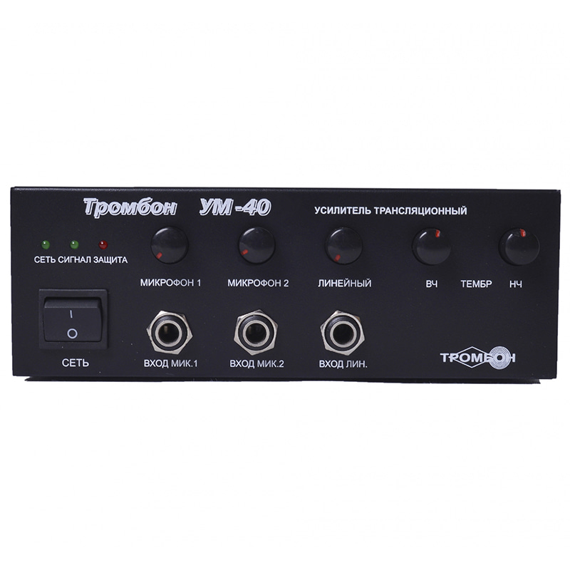 УМ-40 – усилитель малой мощности предназначен для усиления звуковых сигналов при работе в составе систем оповещения людей о пожаре. Может быть использован в составе систем звукового вещания различных зданий.