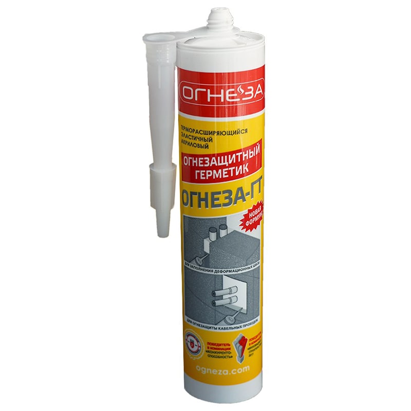 ОГНЕЗА-ГТ – огнезащитный терморасширяющийся герметик - акриловый однокомпонентный огнезащитный состав для монтажа внутри пожароопасных помещений. Обеспечивает предел сопротивляемости высоким температурам до 2 часов.