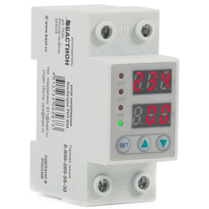 Альбатрос РНТ-63А – многофункциональное реле защиты предназначено для защиты нагрузки от скачков и провалов напряжения и от перегрузки по току путем отключения нагрузки. Изделие имеет функцию автоматического восстановления после срабатывания.