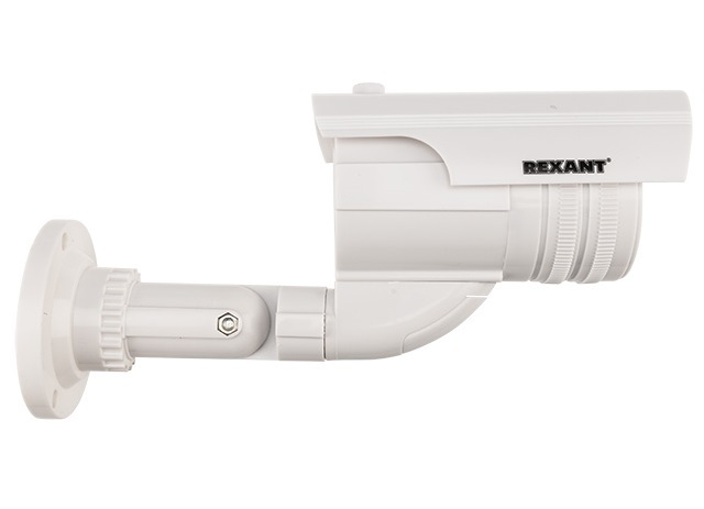 Rexant 45-0240 – уличный муляж камеры видеонаблюдения, цилиндрический белого цвета с мигающим красным светодиодом.