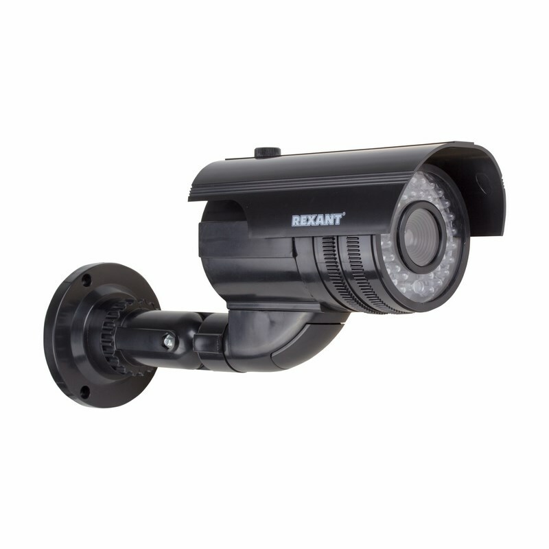 Rexant 45-0250 – уличный муляж камеры видеонаблюдения, цилиндрический черного цвета с мигающим красным светодиодом.