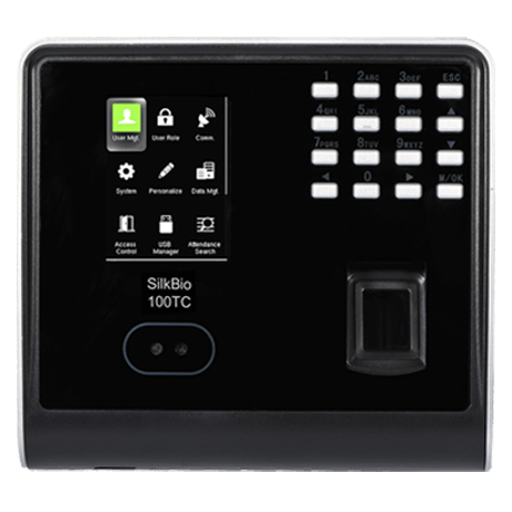 SilkBio-100TC – биометрический терминал учета рабочего времени с поддержкой нескольких режимов верификации: лицо, отпечаток пальца, RFID карта (опционально), пароль.