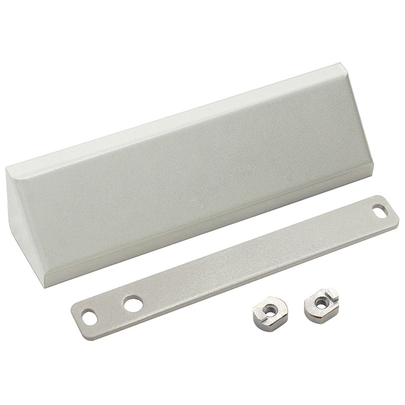 MK 150 – монтажный комплект для крепления корпуса замка ALM-150P на уголке с декоративным кожухом в цвет замка. Применяется для дверей, открывающихся наружу.