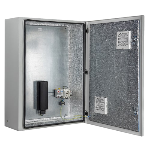 Expert-5УТПВ-П+ – климатический навесной шкаф с вентиляцией и обогревом, защитным реле от "холодного пуска" для монтажа электронного оборудования, требующего защиты от воздействия низких температур, пыли, влаги, атмосферных осадков, нежелательного доступа и других неблагоприятных факторов.
