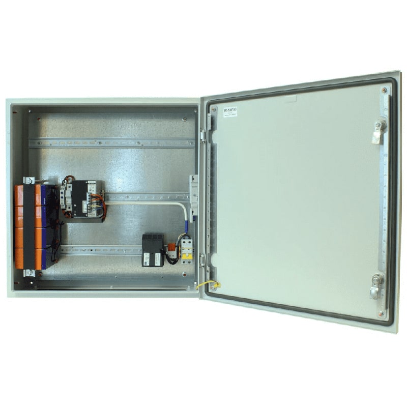В основе металлический шкаф с классом защиты IP66. Доступное место под установку оборудования на встроенные DIN-рейки: верхняя - 540 мм, средняя - 240 мм, нижняя - 270 мм. Может поставляться со встроенным оборудованием по заказу. Температура внутри станции: 0…+50°С.