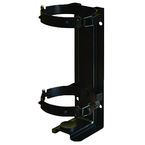 КТХ-3 – кронштейн транспортный с двумя металлическими хомутами и резиновыми демпферами можно использовать для всех типов огнетушителей (порошковых, углекислотных, воздушно-пенных). Конструкция обеспечивает надежную фиксацию огнетушителя при транспортной тряске.