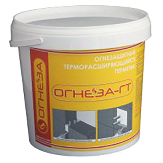 ОГНЕЗА-ГТ – огнезащитный терморасширяющийся герметик - акриловый однокомпонентный огнезащитный состав для монтажа внутри пожароопасных помещений. Обеспечивает предел сопротивляемости высоким температурам до 2 часов.