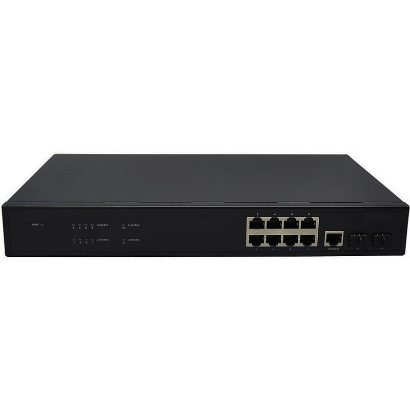 - порты: 8×GE (10/100/1000Base-T) + 2×GE (SFP 1000Base-X);